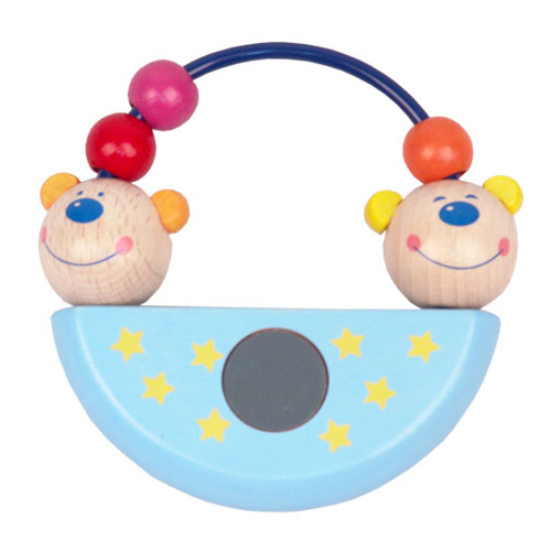 月亮形状的积木块上坐着两个可以滚动的小熊,还有3个色彩鲜艳的小球,还有喔,月亮里还藏着小镜子呢.引起宝宝的好奇心.培养宝宝对事物的认知能力和动手能力,由坚实、自然非再加工的山毛榉木制成,符合欧洲玩具最高安全标准EN71标准和美国玩具安全标准。