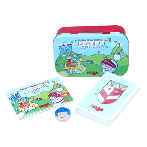 游戏配件:36张卡片(2张城堡卡片,5张道路卡片,5张骑士卡片,24张决斗卡片) 1个骑士、1套说明书。